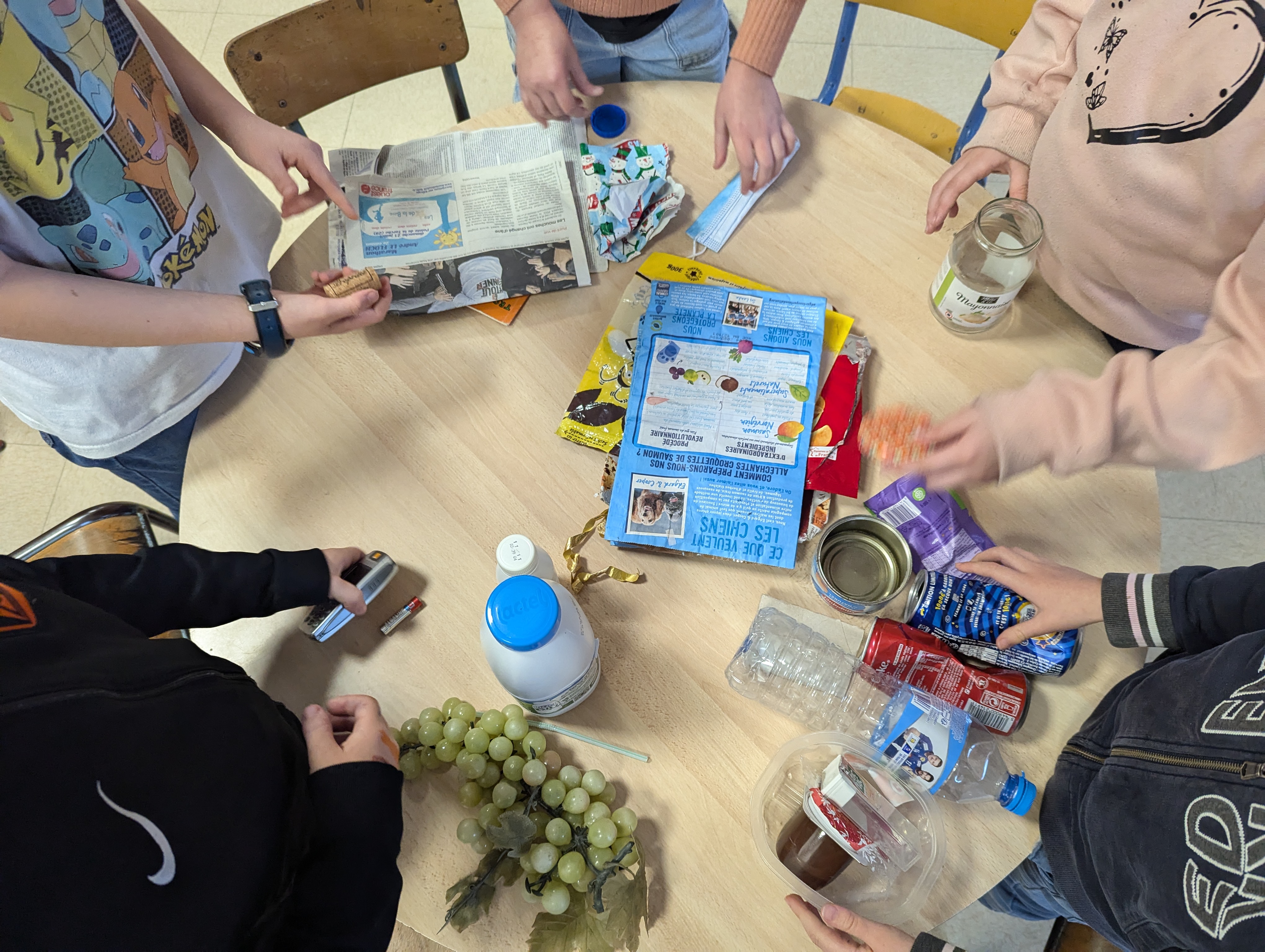 À travers des activités ludiques et concrètes, les élèves manipulent, observent et trient différents déchets afin de mieux comprendre les consignes de tri.
