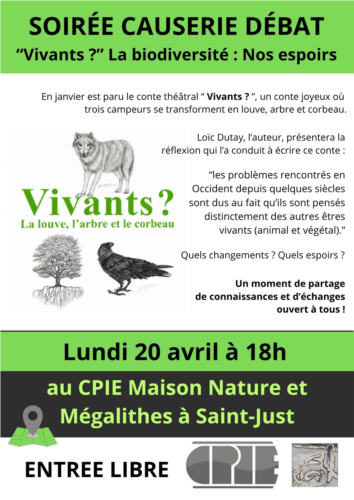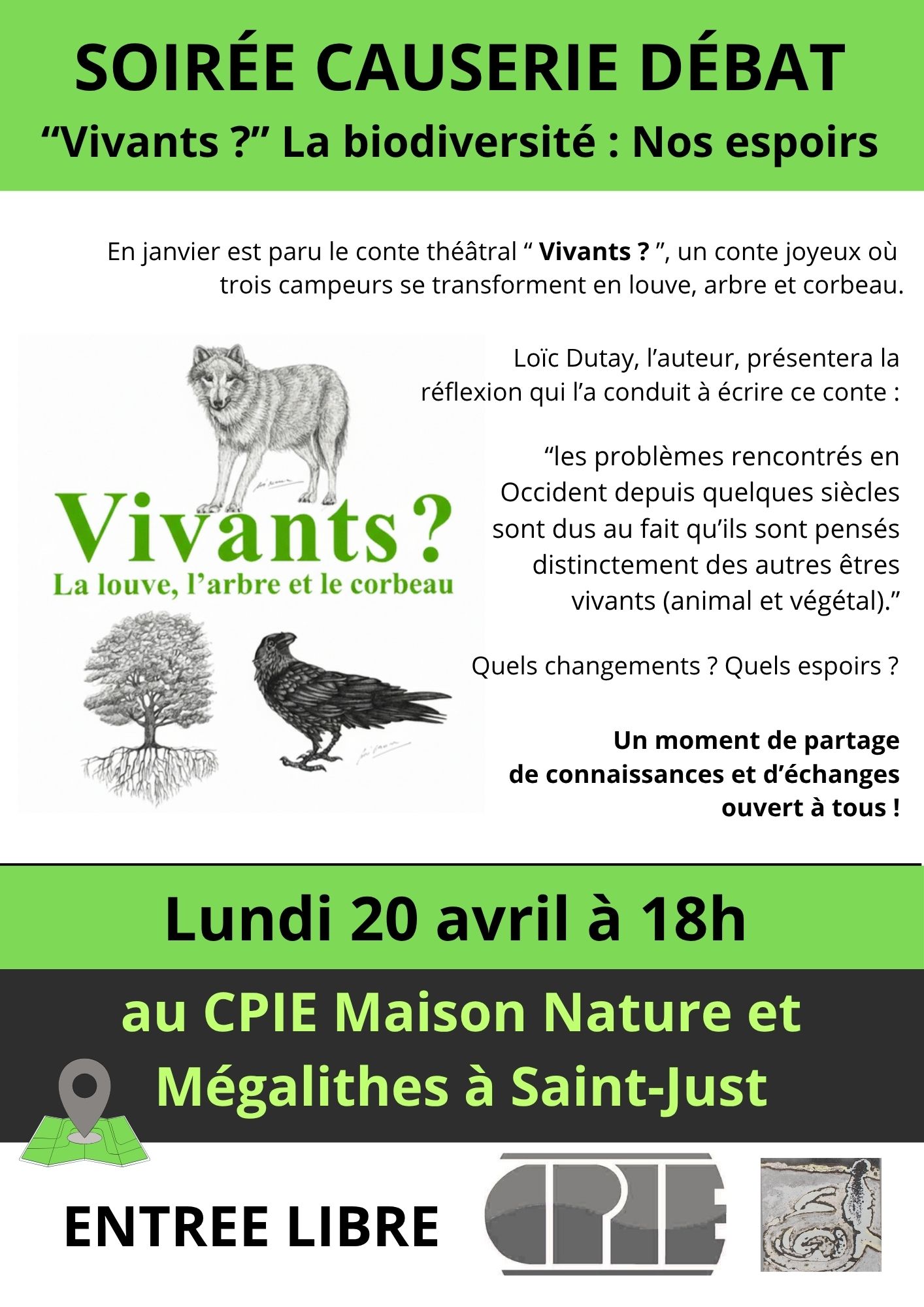 Nous vous proposons une soirée causerie sur le thème du Vivant le 20 avril à St Just, à 18h, en présence de l’auteur.